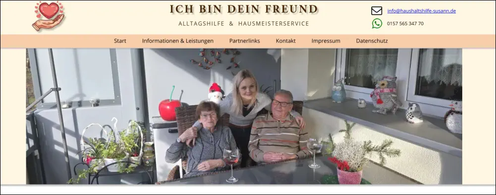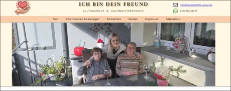 So läuft unsere Zusammenarbeit abMir ist wichtig, dass die Erstellung Ihrer Webseite transparent und persönlich abläuft. In einem ersten Gespräch nehme ich mir Zeit, um Ihre Wünsche, Ziele und Vorstellungen genau kennenzulernen.Anschließend erhalten Sie von mir einen Zugang zu einem geschützten Arbeitsbereich. Dort können Sie jederzeit den aktuellen Stand einsehen, Kommentare hinterlassen und mir direkt Feedback geben. Während des gesamten Projekts haben Sie vollen Einfluss auf Design und Inhalte – ich setze Ihre Ideen professionell um und stehe Ihnen bei allen Fragen beratend zur Seite.Keine versteckten KostenBevor es losgeht, erhalten Sie von mir ein klares, verbindliches Angebot. Es gibt keine versteckten Gebühren oder überraschenden Zusatzkosten – Sie wissen von Anfang an, womit Sie rechnen können.Rechtliches inklusiveIhre neue Webseite ist rechtlich auf der sicheren Seite: Ich integriere ein vollständiges Impressum, eine DSGVO-konforme Datenschutzerklärung sowie den erforderlichen Cookie-Hinweis – alles individuell auf Ihr Projekt abgestimmt.Wartung & Pflege Ihrer WebseiteAuch nach der Online-Stellung Ihrer Webseite übernehme ich gerne die weitere Betreuung. Auf Wunsch übernehme ich die regelmäßige Pflege Ihrer Webseite – dazu zählen Updates, kleinere Anpassungen sowie das Einpflegen neuer Inhalte. So bleibt Ihre Seite stets aktuell und sicher.